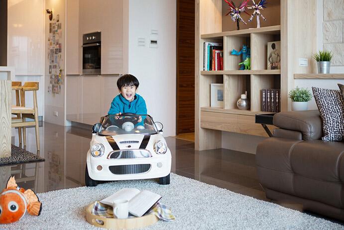 家,是小盆友開始成長的地方,上幼兒園前,吃喝玩樂基本都在這里。他才不會老老實實的呆在小床上扣手機呢,開個小汽車繞來繞去,盡量將房間內的阻礙降低到最低。